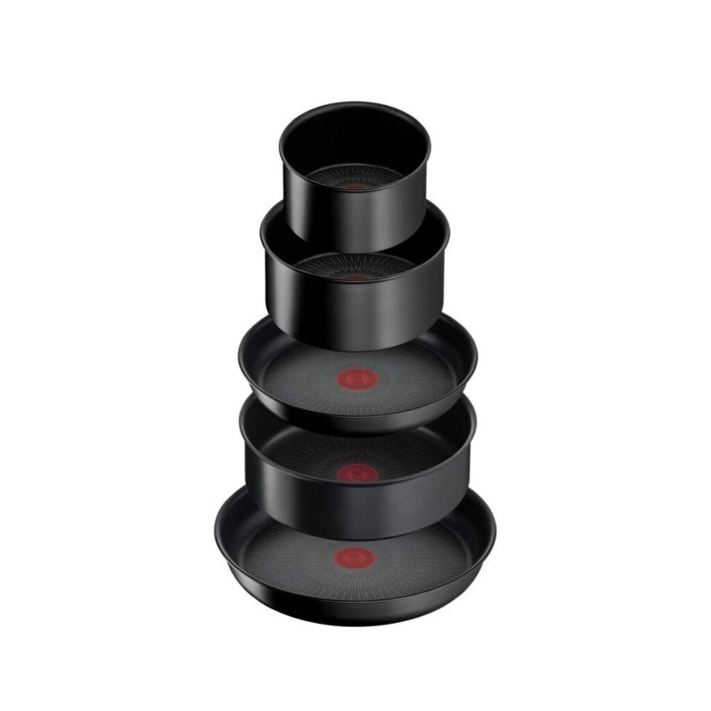 • Комплектът включва: два тигана, два тенджери, касерола, три капака, две отстраняеми дръжки, 3-частен комплект прибори Ingenio.