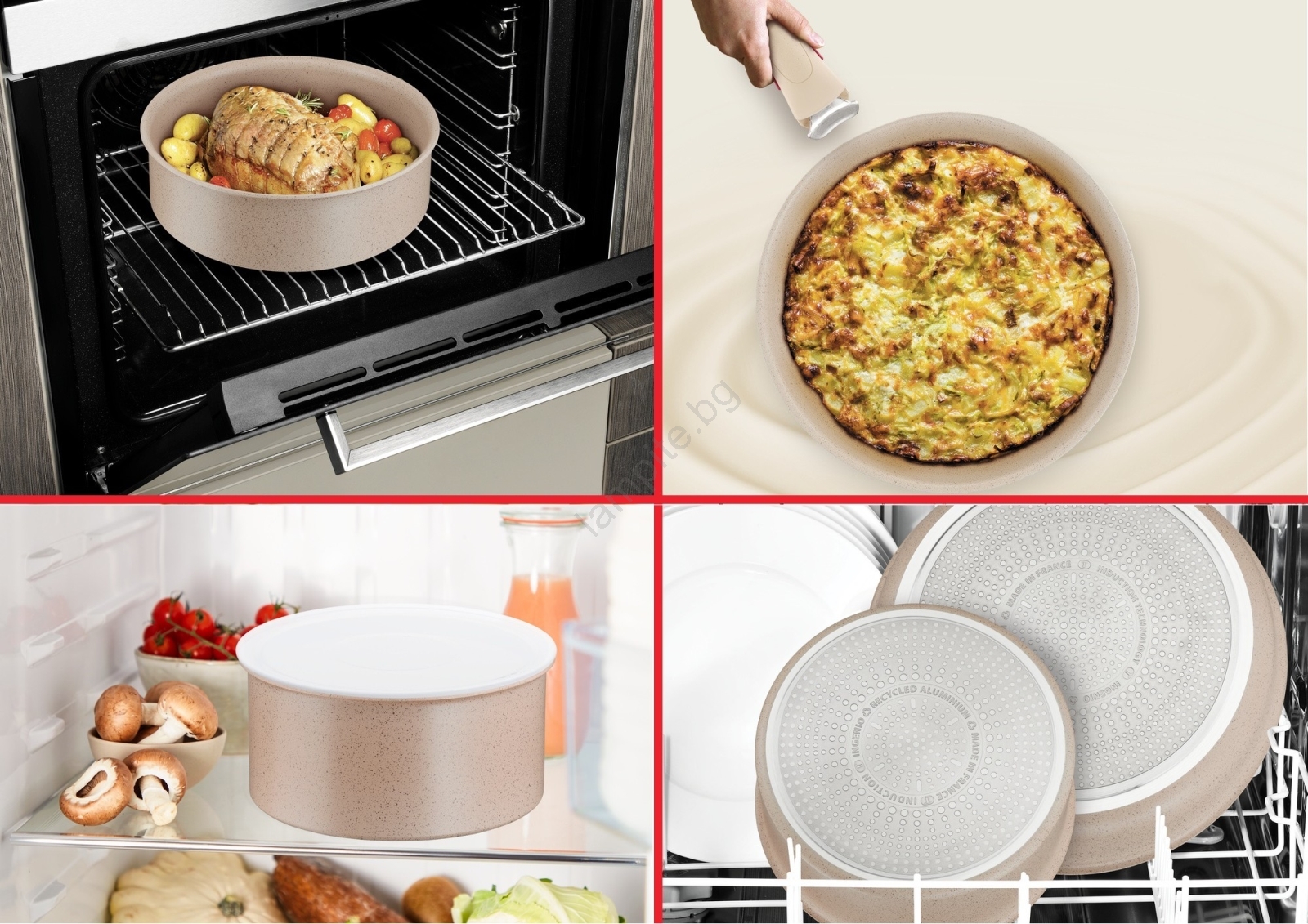 • Вътрешната повърхност е с незалепващо покритие Mineralia+, което позволява готвене с минимално количество мазнина и улеснява почистването.