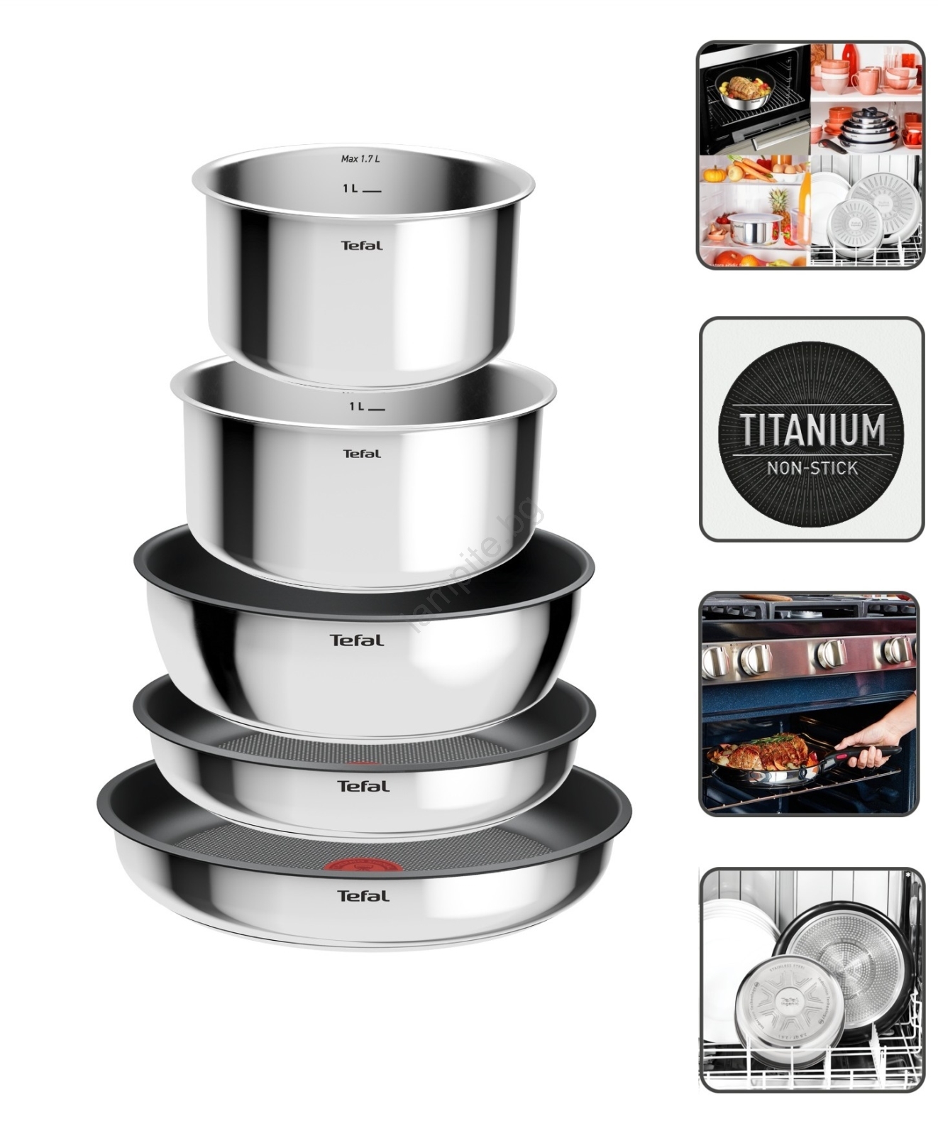 Tefal - Комплект съдове за готвене от 9 части INGENIO COOK, неръждаема стомана