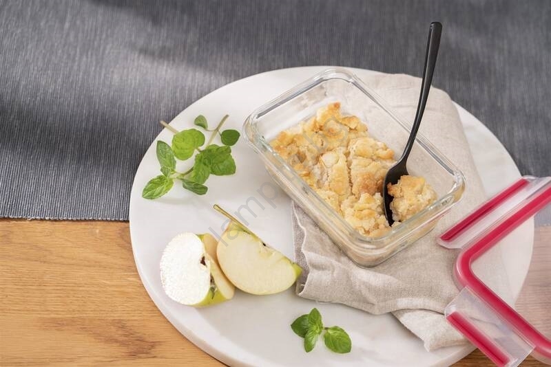 • Поради изработката му от термоустойчиво стъкло, може да се използва и във фурна, което ви позволява да приготвите ястието директно във фурната и след това да го вземете със себе си в съда на разходка или на работа.