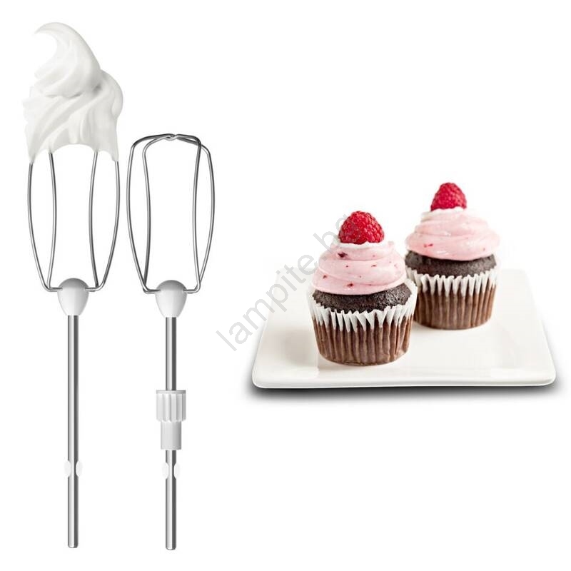 • В комплекта ще намерите както бъркалки за миксиране и разбиване, така и месачки от неръждаема стомана.