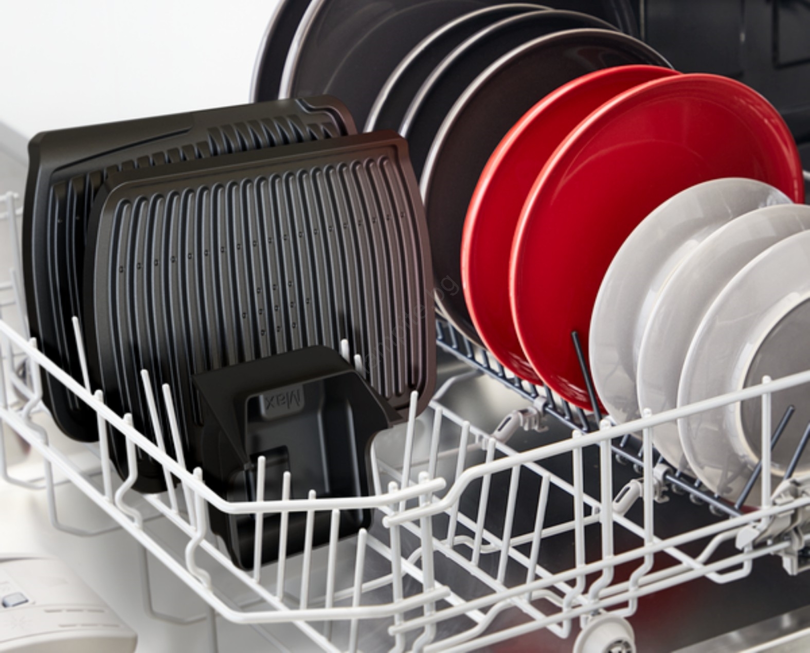 • Грил плочи с незалепващо покритие и наклон за оттичане на мазнините – по-здравословно приготвяне за до 4 души.
