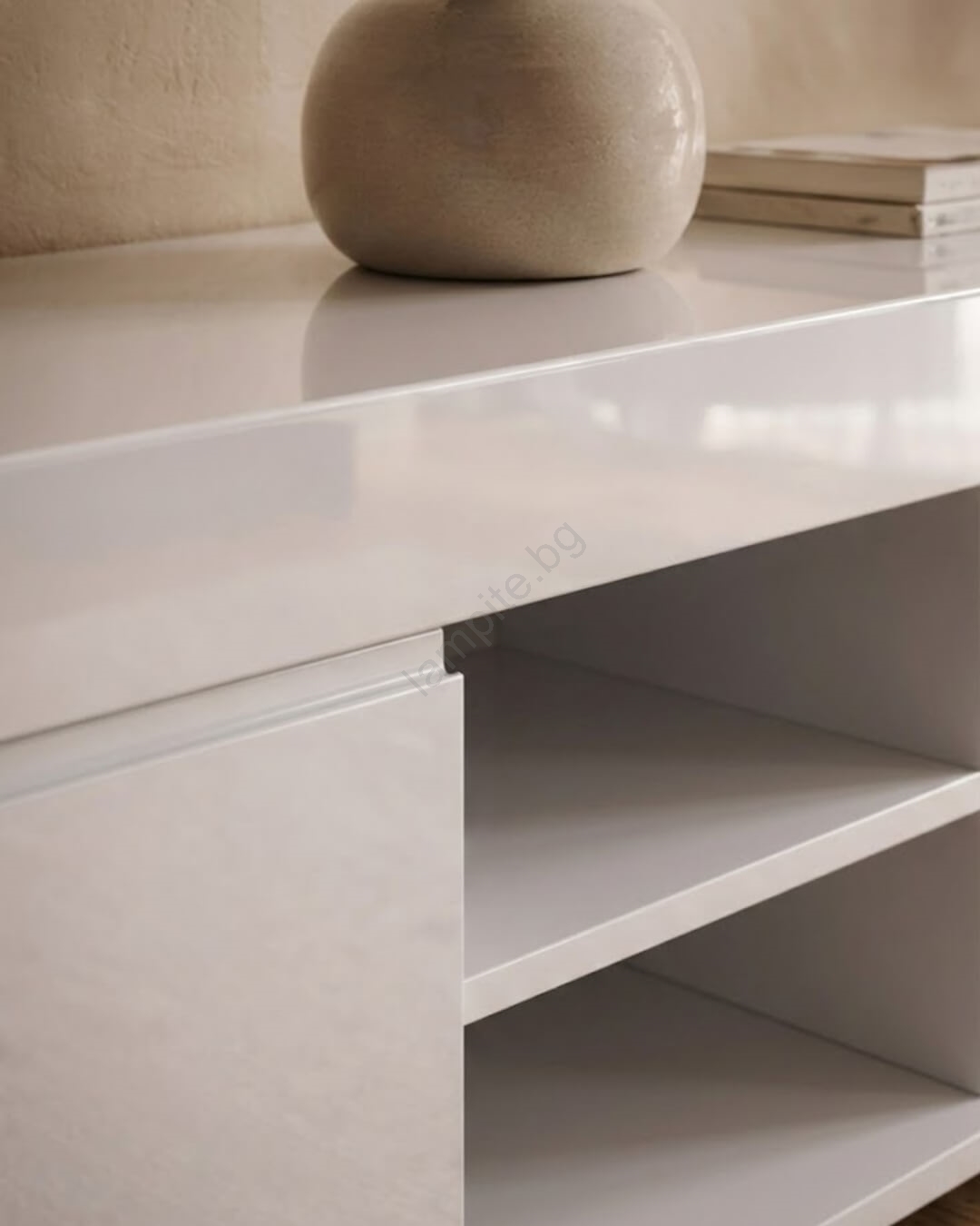 • Благодарение на дългата правоъгълна форма е идеален за поставяне под стенен телевизор или като модерно решение за съхранение в хола.