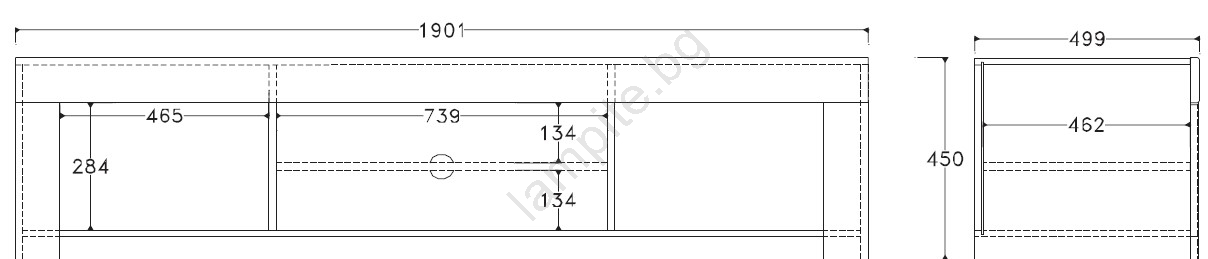 • Разполага с две затворени странични отделения и два открити рафта, като единият в средата има отвор за кабел.