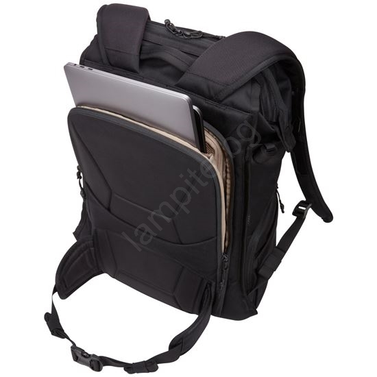 • Удобен достъп до лаптопа и пълния комплект фотографско оборудване през отвора на гърба.