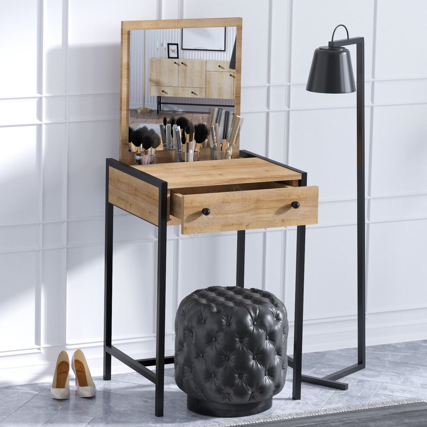 • Тоалетна масичка със огледало за съхранение на вашата козметика.