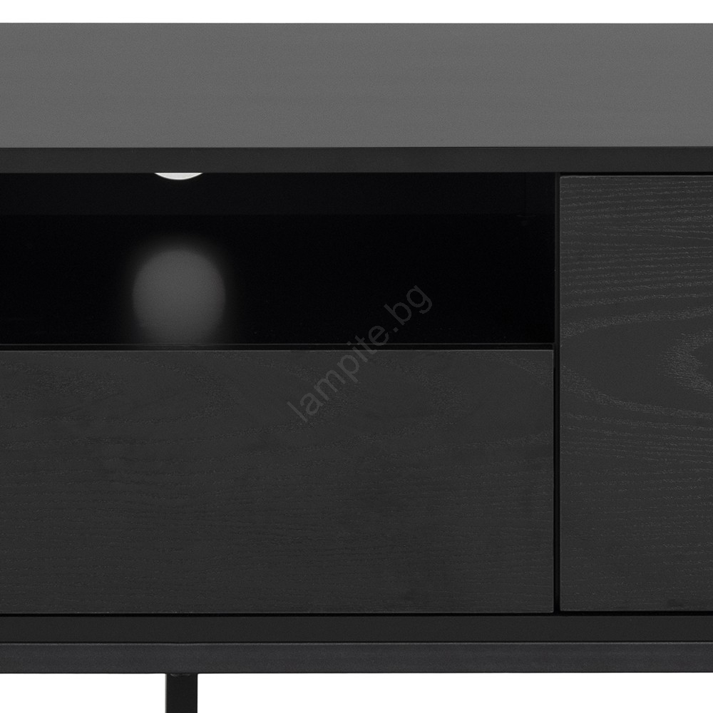 • ТВ шкафът е също така просторен, тъй като разполага с 1 чекмедже, 1 отворено и 2 затворени отделения, които се отварят с едно натискане.