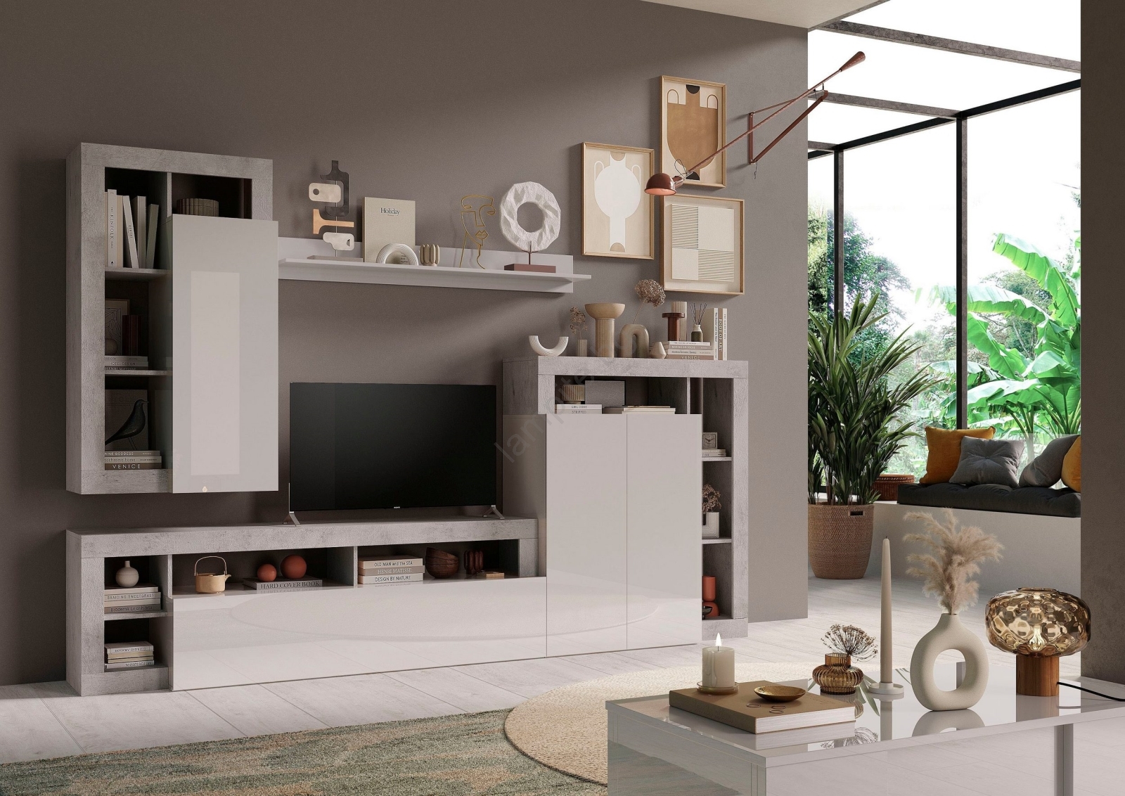 • ТВ шкаф LENOR бял/сив бетон