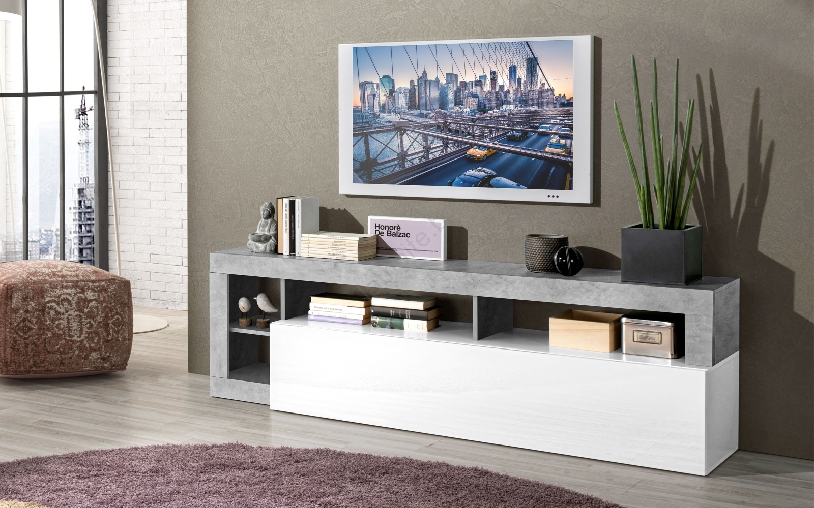 ТВ шкаф LENOR бял/сив бетон