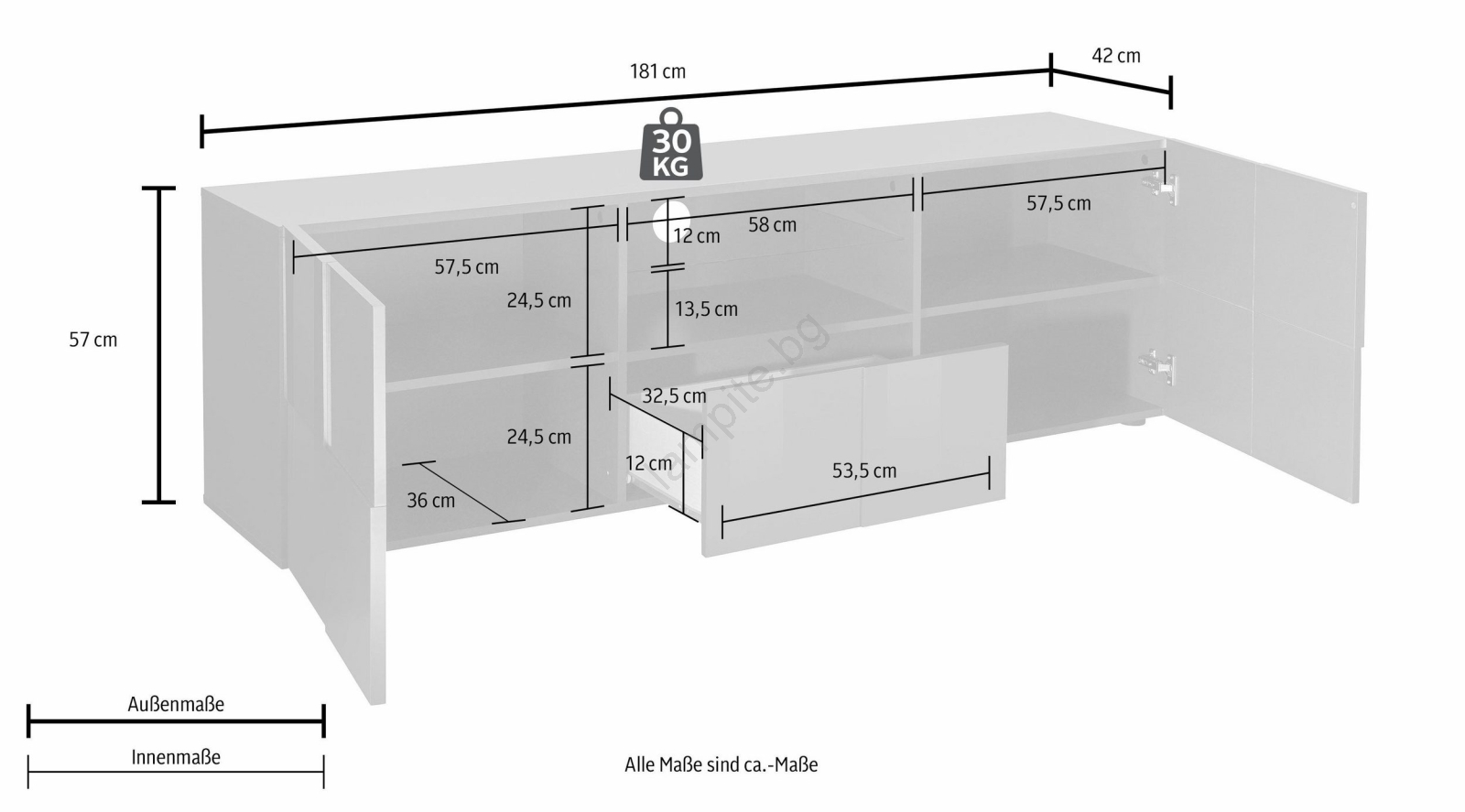 • Благодарение на дългата правоъгълна форма е идеален за поставяне под стенен телевизор или като модерно решение за съхранение в хола.