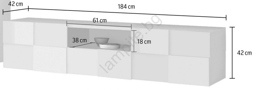 • Благодарение на продълговатата правоъгълна форма е идеален за поставяне под стенен телевизор или като модерно решение за съхранение в хола.