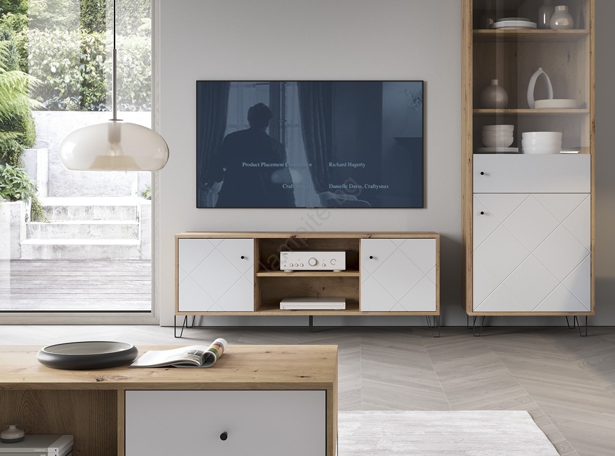 • ТВ шкаф SULA дъб artisan/бял