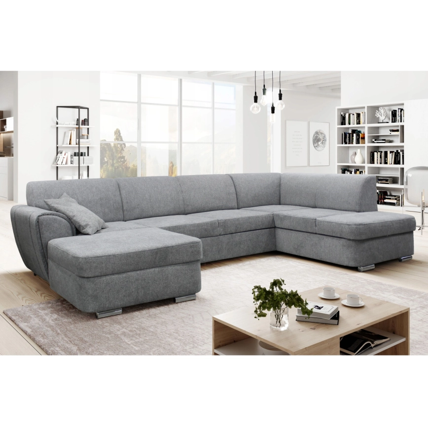 • U-образен разтегателен ъглов диван с място за съхранение SERPA, ляв, сив