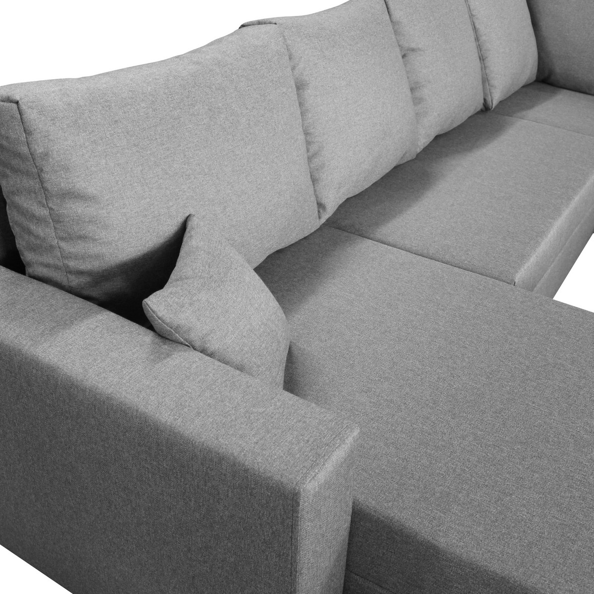 • Универсален разтегателен U-образен ъглов диван SEYA с вместително място за съхранение, сив