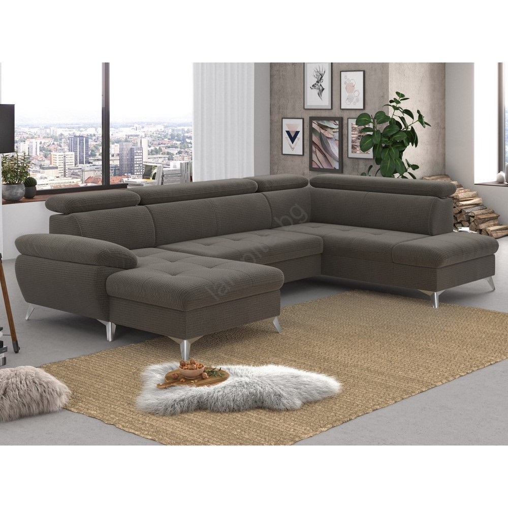 • Модерен ъглов диван с форма U (десен ъгъл) е идеалният избор за просторни и стилни дневни.