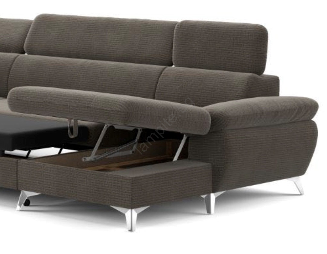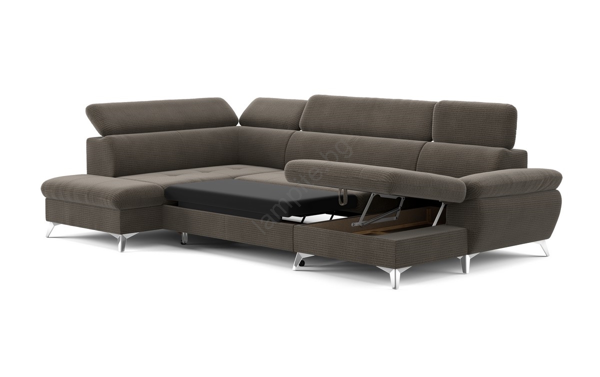 • Разтегателен ъглов диван с ракла във формата на U CATANIA, ляв, кафяв