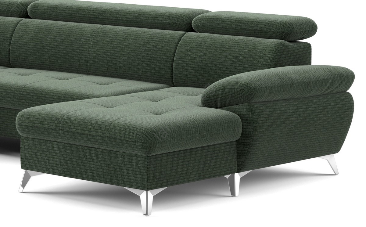 • Разтегателен ъглов диван с ракла във формата на U CATANIA, десен, зелен