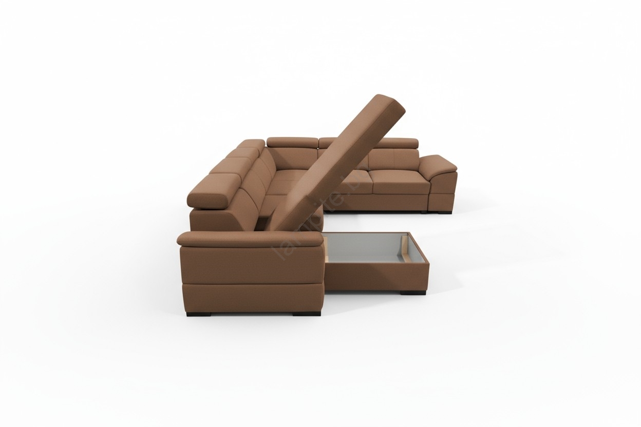 • Разтегателен холов ъглов диван GRANADA с универсален U-образен ъгъл и място за съхранение, кафяв