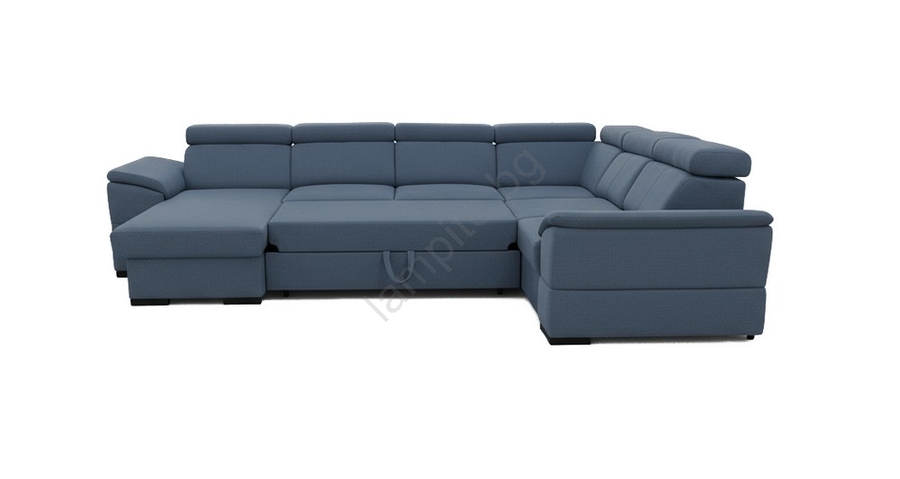 Разтегателен ъглов диван с универсален U-образен ъгъл и място за съхранение GRANADA, син