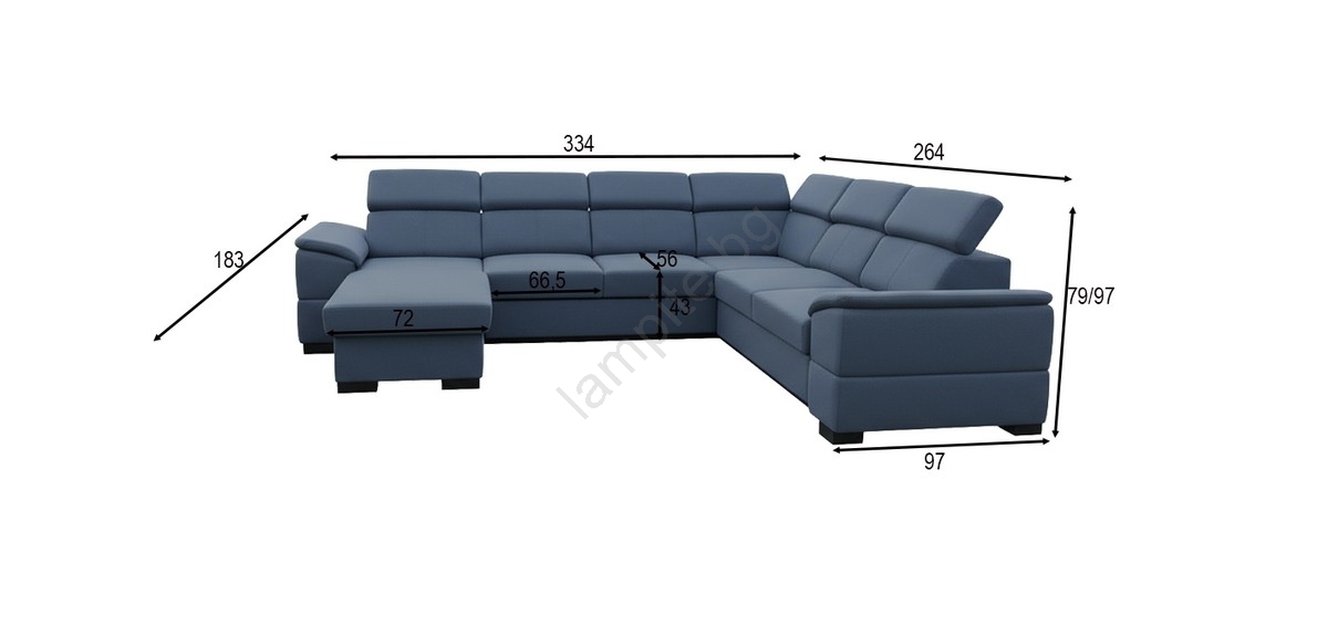 • Диванът предлага 7 регулируеми облегалки за глава с 5 степени на регулиране.