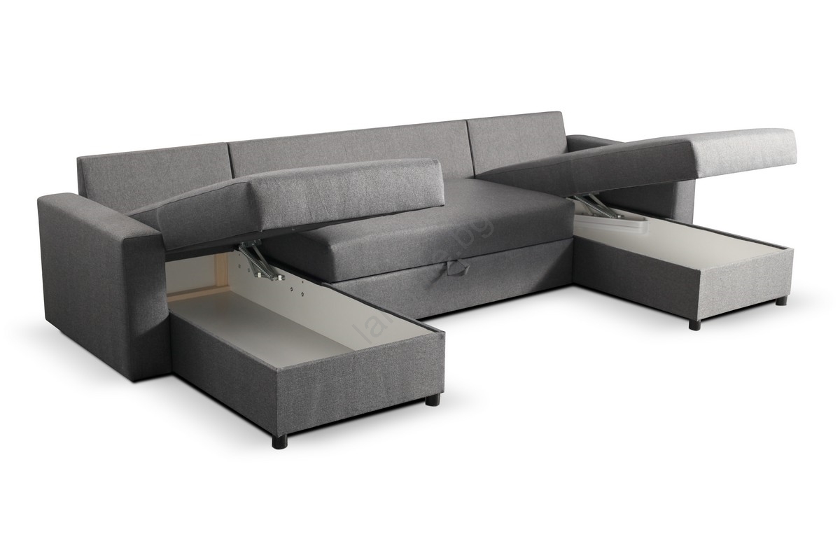 U-образен разтегателен диван с място за съхранение JANISE, сив