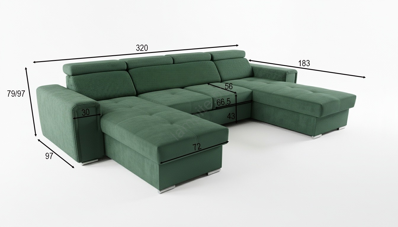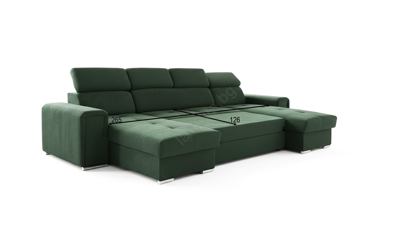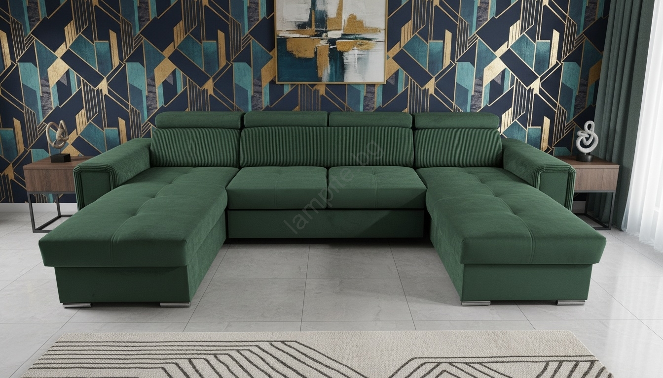 • Просторен ъглов диван с форма U, идеален за ежедневно спане, предлага както комфорт, така и стилен дизайн.