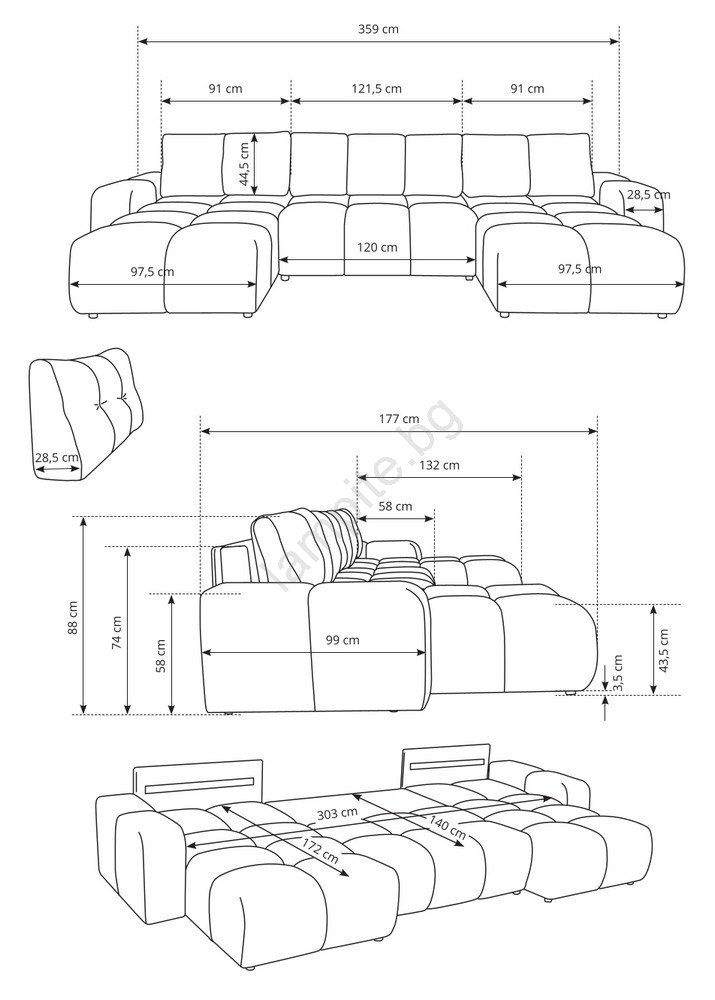 • Диванът разполага с просторно отделение за съхранение за спално бельо и други сезонни вещи.