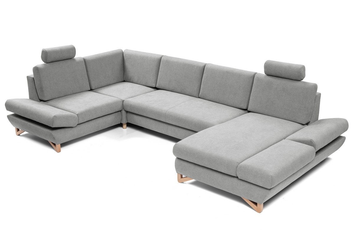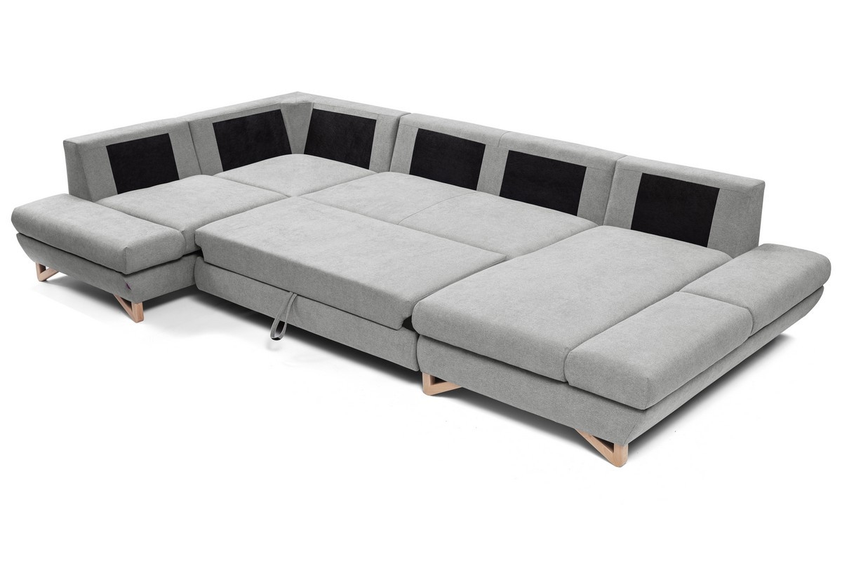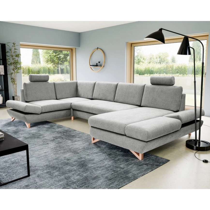 • U-образна разтегателна ъглова тапицирана холова гарнитура AVESTA с ракла, сива