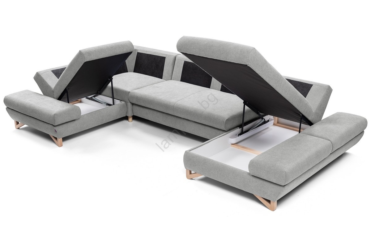 • Разтегателна ъглова тапицирана холна гарнитура U-образна с място за съхранение AVESTA, антрацит