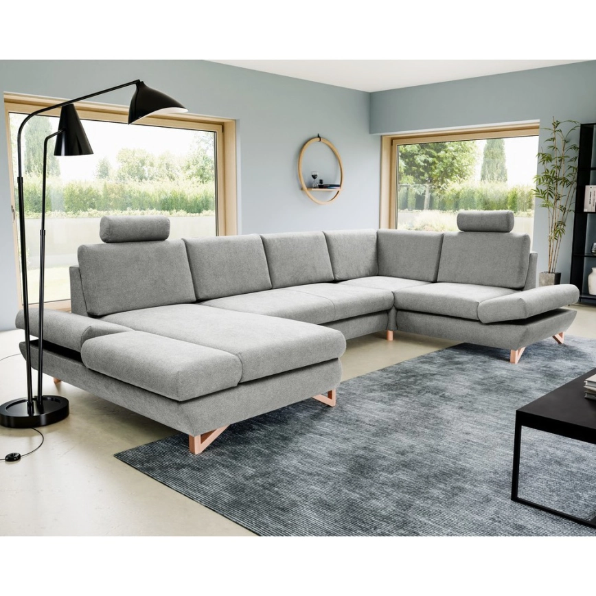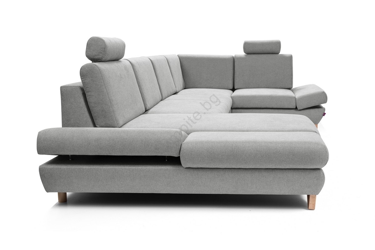 • Разтегателен U-образен тапициран ъглов диван с ракла AVESTA, сив