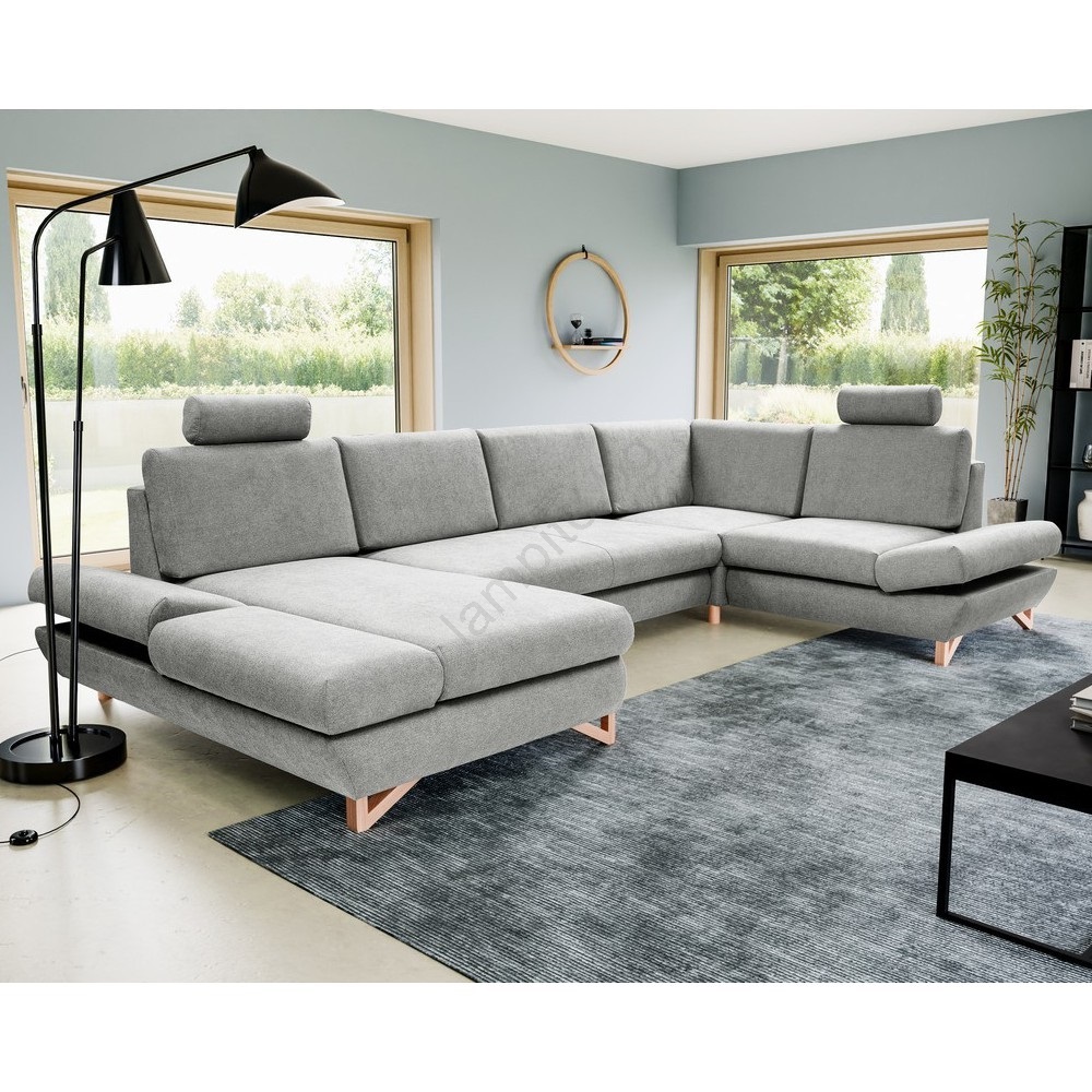 U-образна разтегателна ъглова тапицирана холова гарнитура AVESTA с ракла, сива