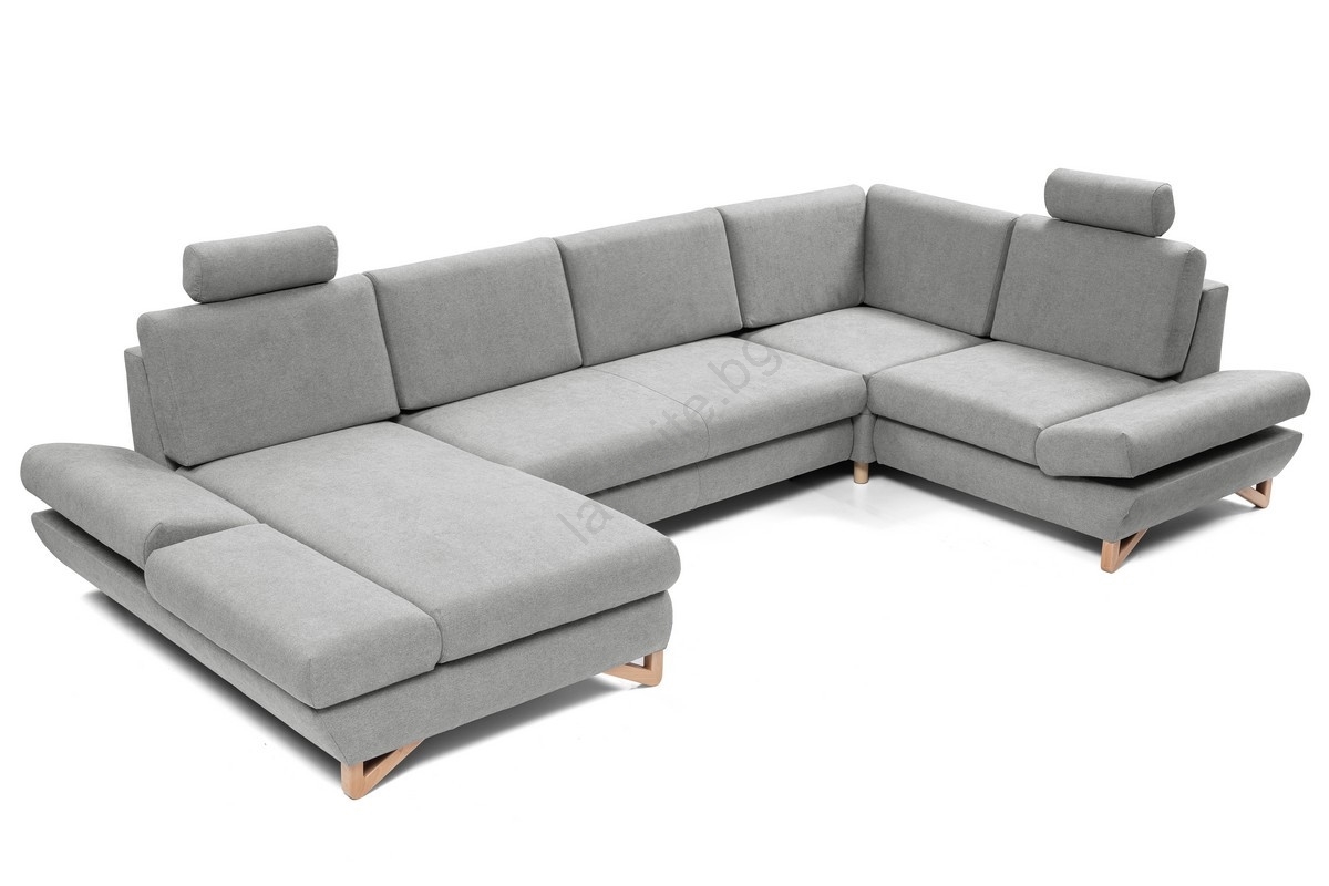 • U-образна разтегателна ъглова тапицирана холова гарнитура AVESTA с ракла, сива