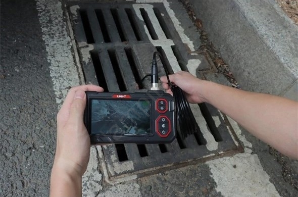 • Модерен индустриален бороскоп с голям дисплей, предназначен за проверка на двигатели, тръбопроводи, канали за отвеждане на вода, вентилационни отвори или кухини в стените на сгради.
