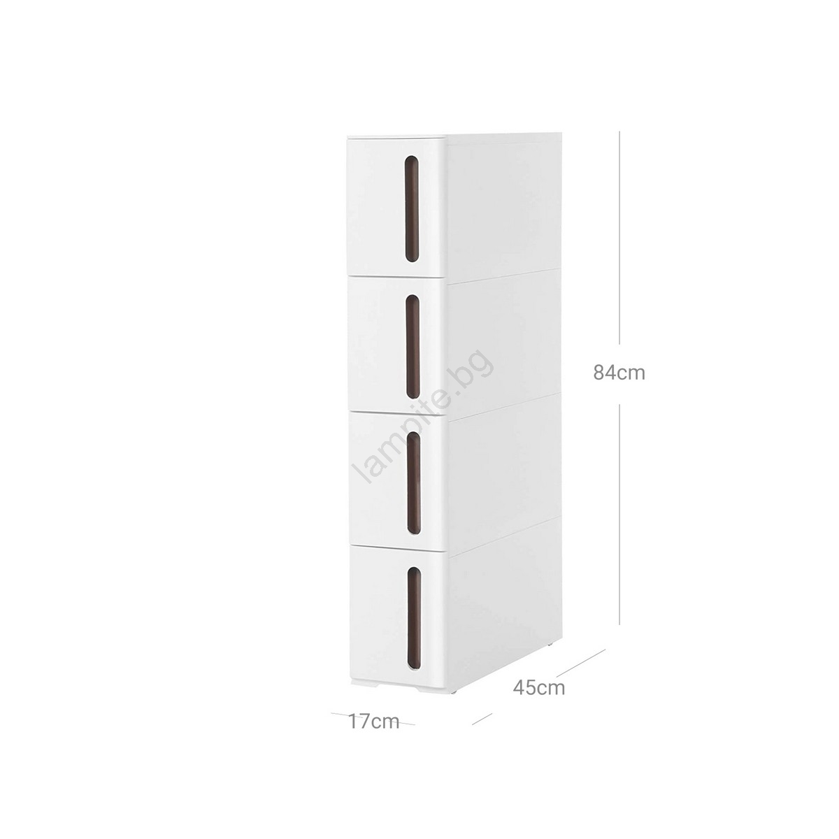 • 4 дълбоки плъзгащи се чекмеджета предлагат голям обем за съхранение над 28 л; за разлика от дървени или метални рафтове, тези пластмасови чекмеджета ви спестяват проблеми с ръждата — дори в банята.