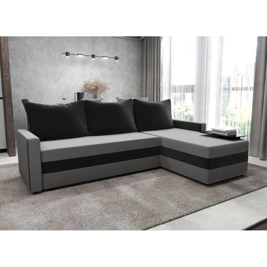 Тапицирана универсална разтегателна ъглова холна гарнитура в L-форма BRISTOL, сива/черна