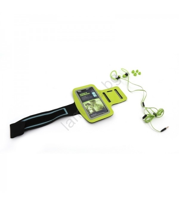Спортни слушалки с микрофон и калъф за ръка зелени