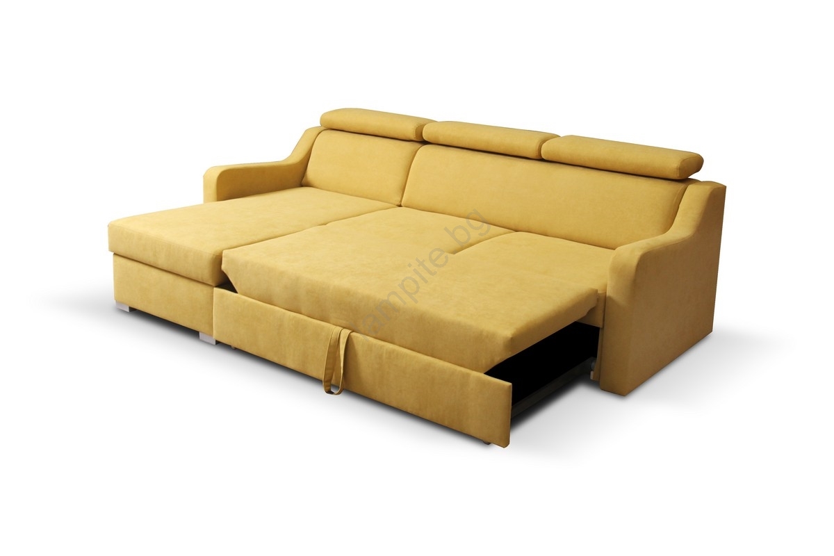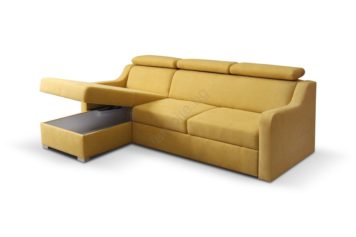 • Универсален разтегателен ъглов диван с място за съхранение PORTO жълт