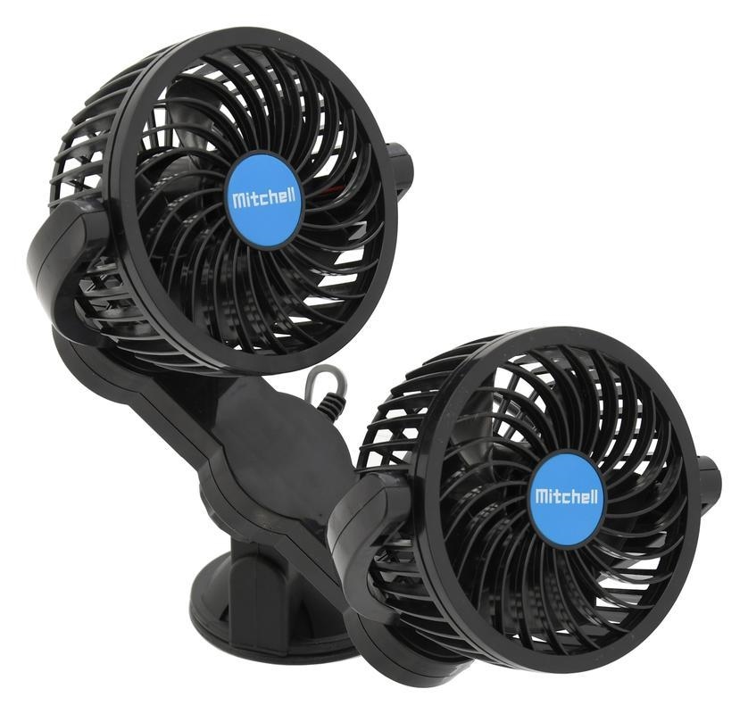 • Практичен комплект от два регулируеми вентилатора с здрав стойка на панта и вендуза.
