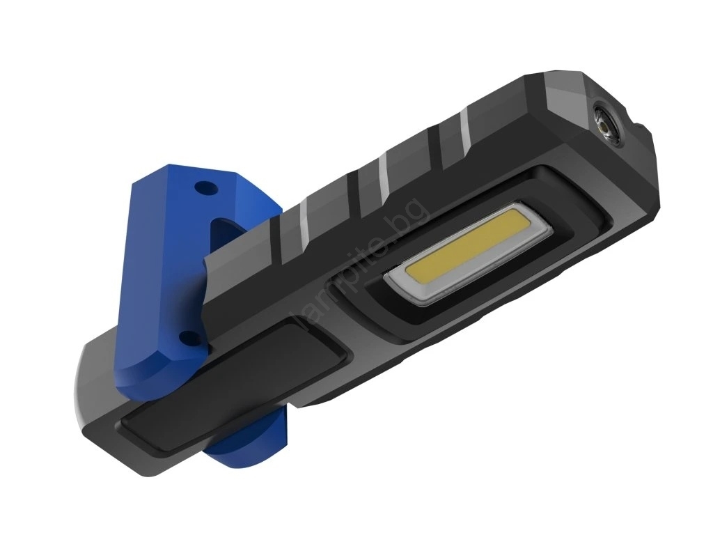 • Отгоре има кука за окачване, от долната страна магнит за закрепване върху метални повърхности и гъвкав държач, който позволява фенерът да се постави под желания ъгъл.