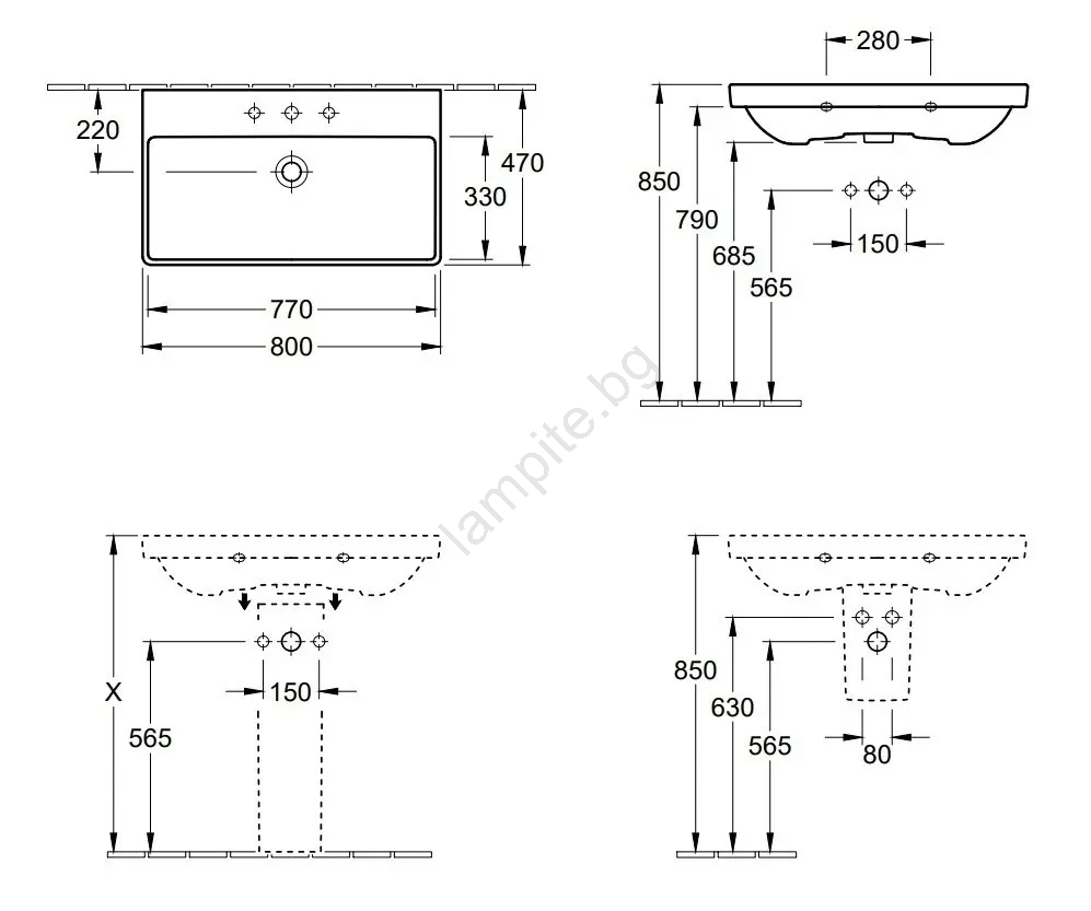 • Смесителят за мивка и сифонът не са включени в комплекта.