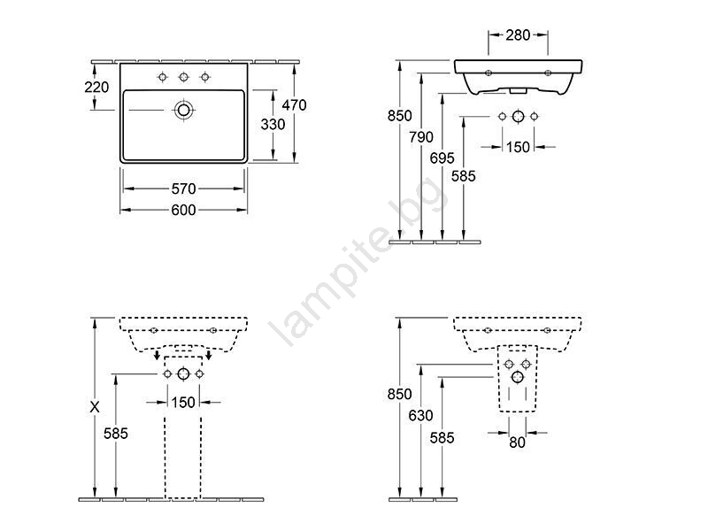 Villeroy & Boch 415860R1 - Конзолен умивалник AVENTO 60x47 см керамичен/бял