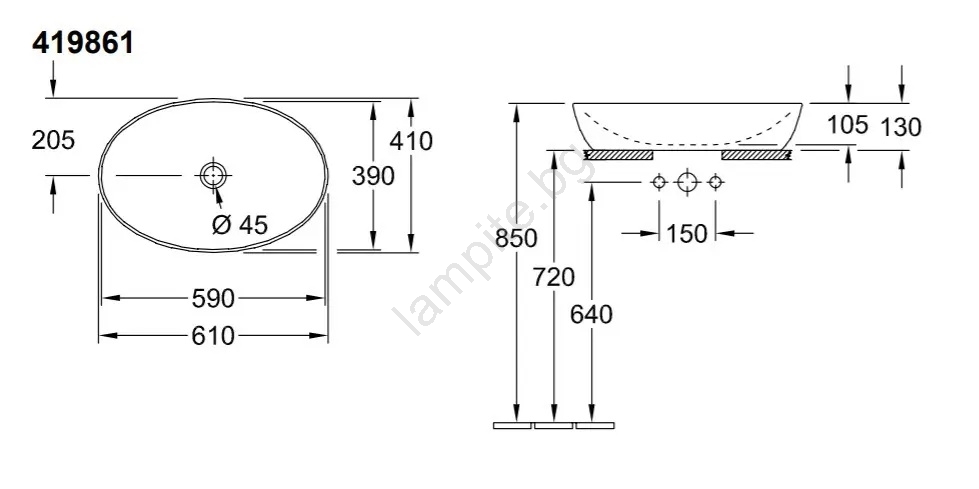 Villeroy & Boch 41986101 - Надплотен умивалник ARTIS 61x41 cm керамика/бял