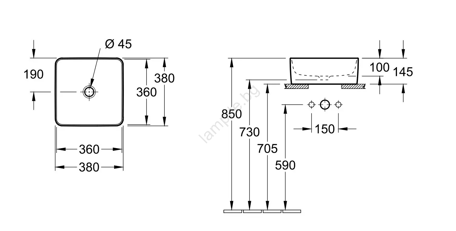 Villeroy & Boch 4A213801 - Мивка за плот COLLARO 38x38 см керамична/бяла