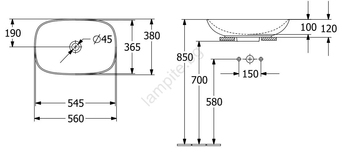 Villeroy & Boch 4A490001 - Умивалник за плот LOOP&FRIENDS 56x38 cm керамичен/бял