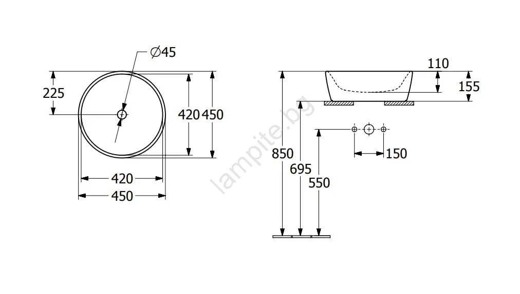 Villeroy & Boch 5A254501 - Мивка за монтаж върху плот ARCHITECTURA Ø 45 см керамика/бяла