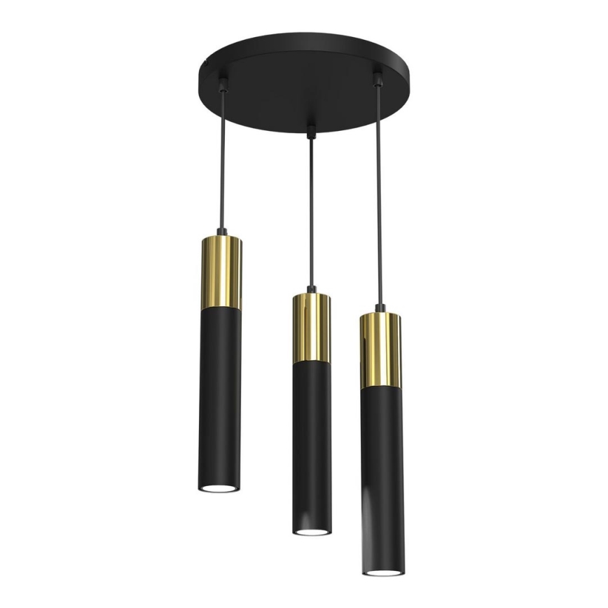 Висящ полилей CASSA 3xGU10/8W/230V черен/златист се отличава с приятен и функционален дизайн.  Подходяща е крушка с цокъл GU10. Тук можете да закупите и други крушки на изгодни цени. Ще имате интересно допълнение към дома си.