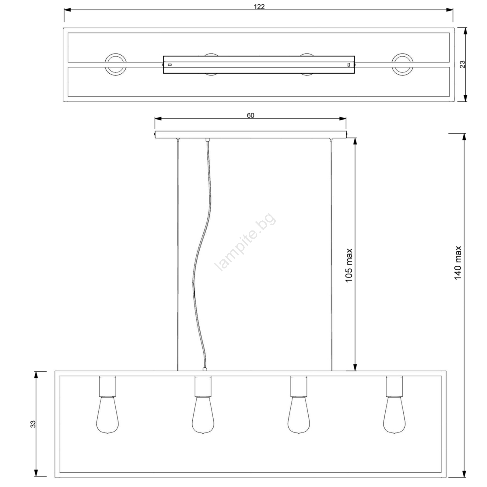 • Висящ полилей FRAME 4xE27/60W/230V черен