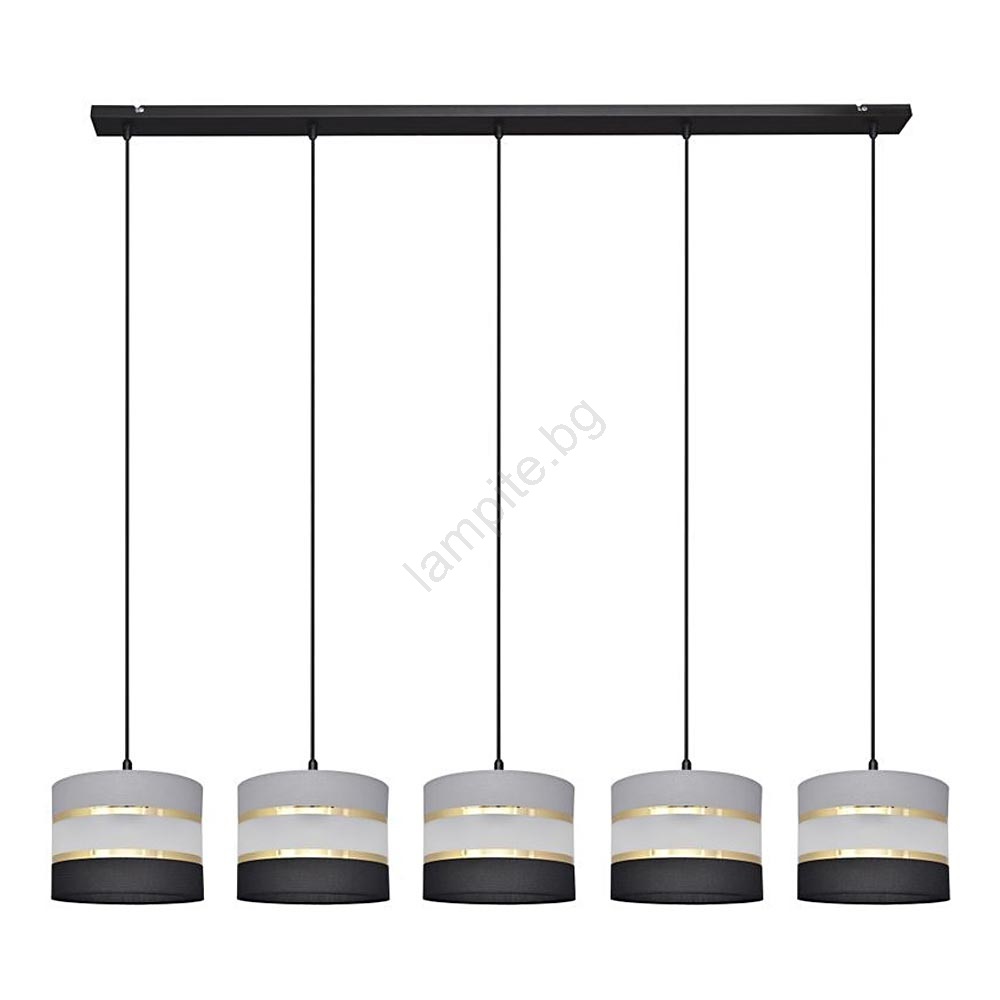 • Висящ полилей HELEN 5xE27/15W/230V черен/сив/златист