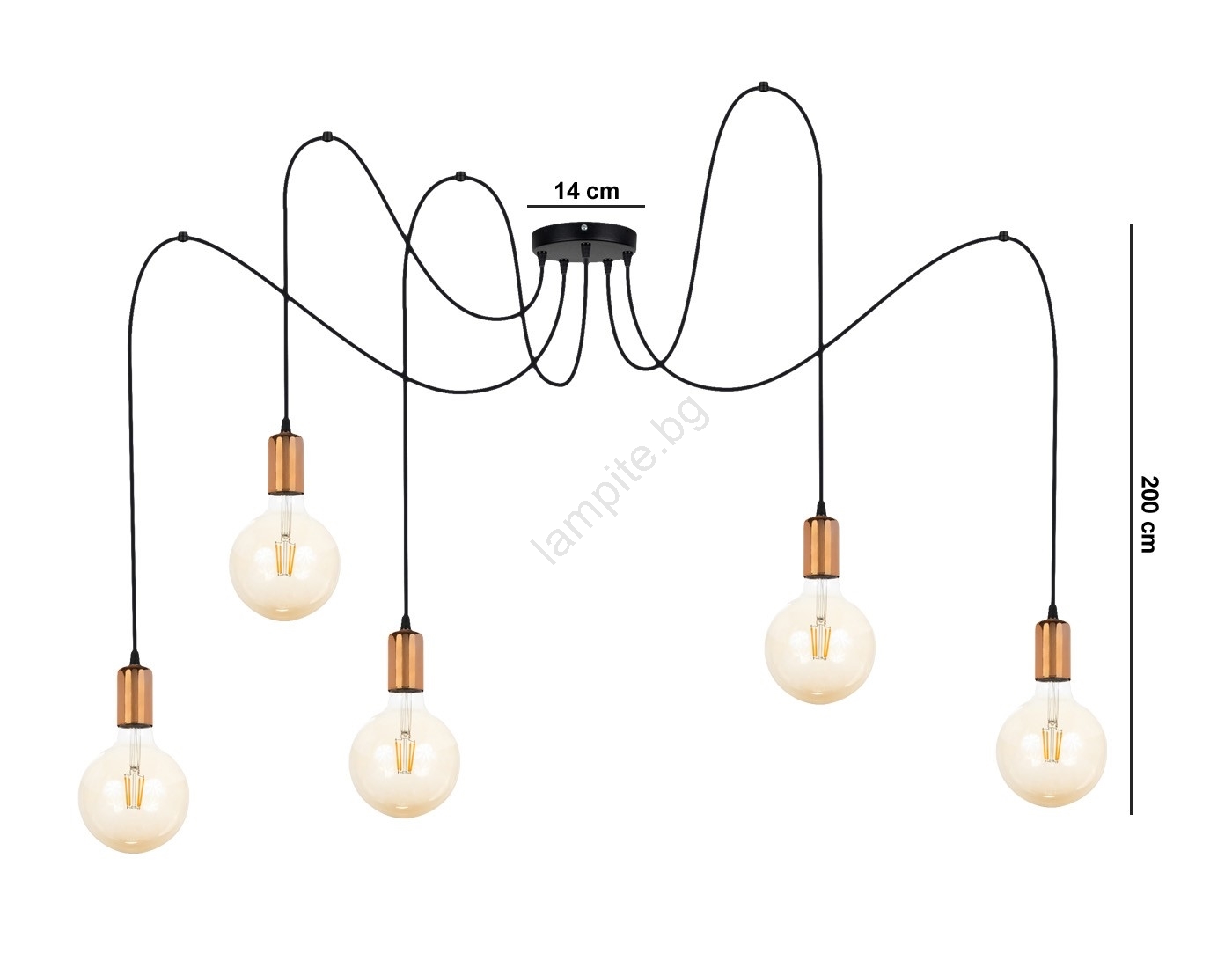 Пендел MIROS 5xE27/60W/230V паяк черен/меден се отличава с приятен и функционален дизайн.  Подходяща е крушка с цокъл E27. Тук можете да закупите и други крушки на изгодни цени. Ще имате интересно допълнение към дома си.