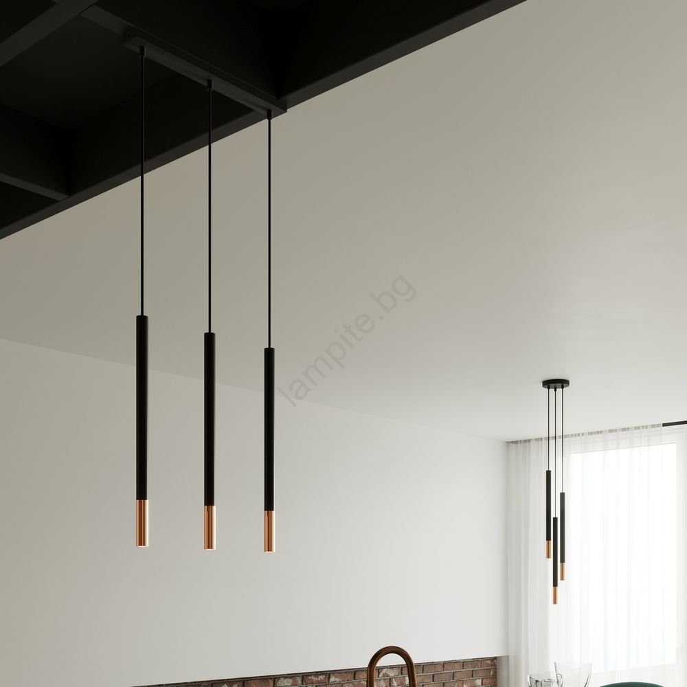 Висящ полилей MOSAIC 3xG9/12W/230V черен/мед се отличава с приятен и функционален дизайн.  Подходяща е крушка с цокъл G9. Тук можете да закупите и други крушки на изгодни цени. Ще имате интересно допълнение към дома си.